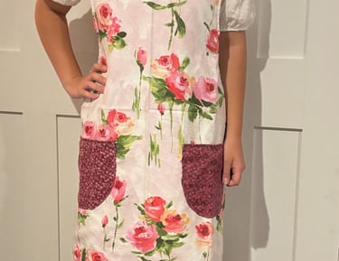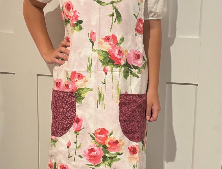Beautiful custom linens and aprons made with Custom Fabrics